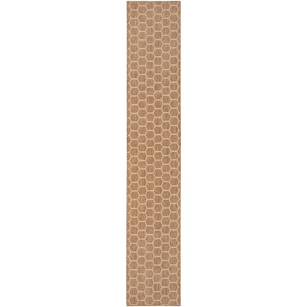 Reversible Indoor Outdoor Natural 2 ft. x 12 ft. Honeycomb Contemporary Runner Area Rug