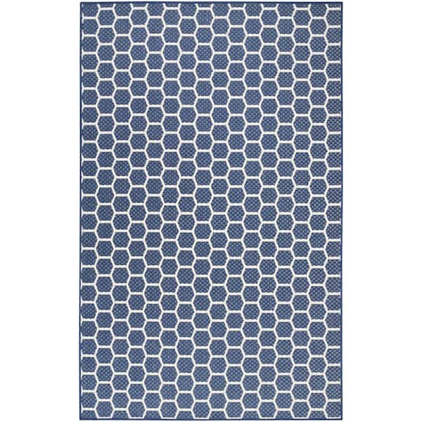Reversible Indoor Outdoor Navy 5 ft. x 7 ft. Honeycomb Contemporary Area Rug