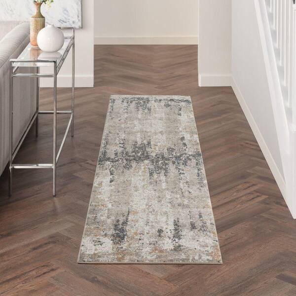 Tangra Cream Grey 2 ft. x 8 ft. Abstract Geometric Contemporary Kitchen Runner Area Rug