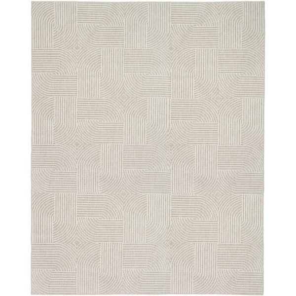 Textured Home Beige Ivory 8 ft. x 10 ft. Geometric Contemporary Area Rug