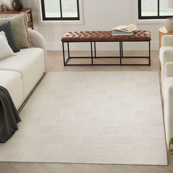 Textured Home Ivory 8 ft. x 10 ft. Geometric Contemporary Area Rug