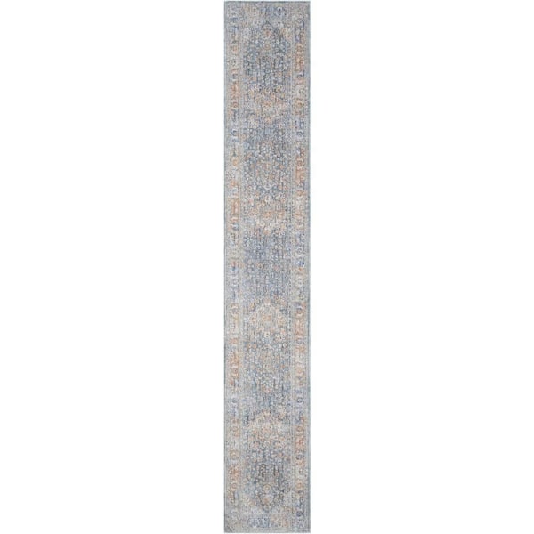 Timeless Classics Ivory Blue 2 ft. x 12 ft. Center medallion Traditional Runner Area Rug