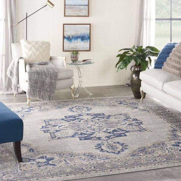 Tranquil Grey/Navy 9 ft. x 12 ft. Center medallion Traditional Area Rug