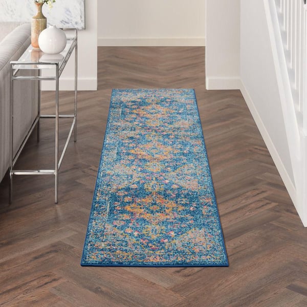 Tranquil Navy Blue 2 ft. x 7 ft. Center Medallion Traditional Kitchen Runner Area Rug