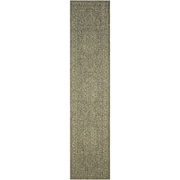 Tulum Olive 2 ft. x 8 ft. Center medallion Contemporary Runner Area Rug
