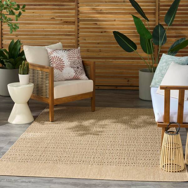 • Taupe Polypropylene area rug with 1/2 inch thickness