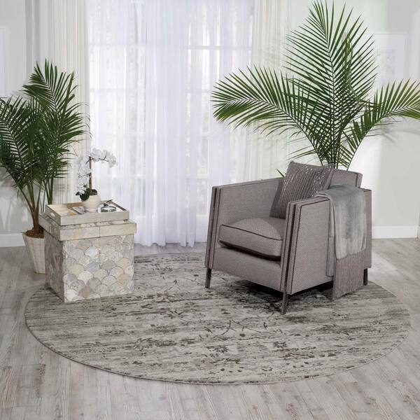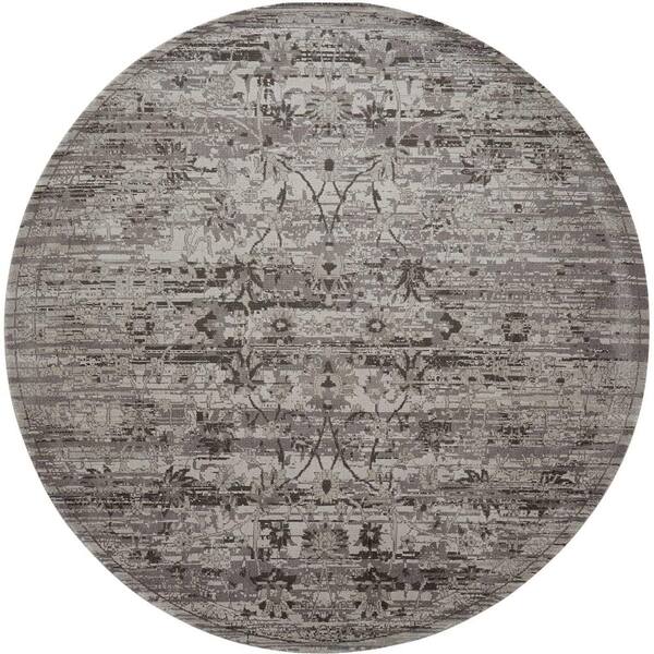 Twilight Silver 8 ft. x 8 ft. Bordered Transitional Round Area Rug