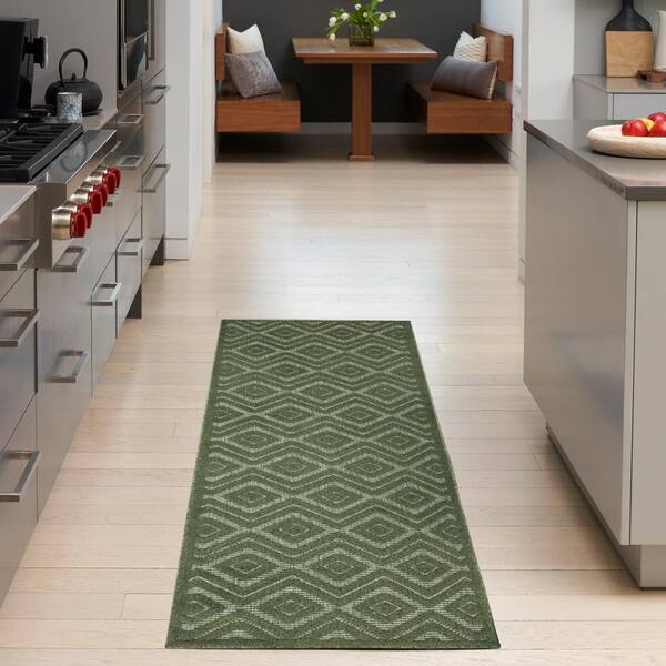 Versatile Green 2 ft. x 8 ft. Diamond Contemporary Runner Indoor Area Rug