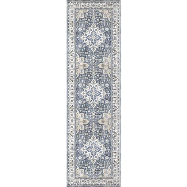 Vintage Home Ivory Blue 2 ft. x 8 ft. Center medallion Traditional Runner Area Rug