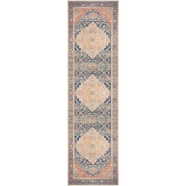 Vintage Washables Blue Coral 2 ft. x 8 ft. Center Medallion Traditional Runner Area Rug