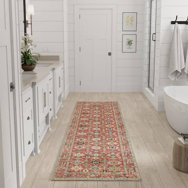 Vintage Washables Rust Multicolor 2 ft. x 6 ft. Floral Traditional Runner Area Rug