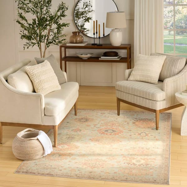 Vintage Washables Sage Multicolor 4 ft. x 6 ft. Medallion Traditional Area Rug