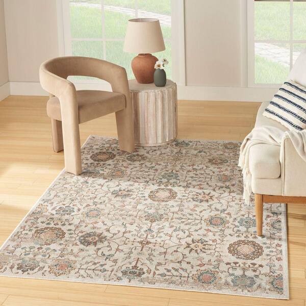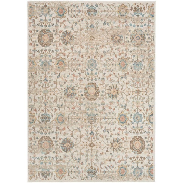 Washable Decor Beige 5 ft. x 7 ft. Medallion Traditional Area Rug