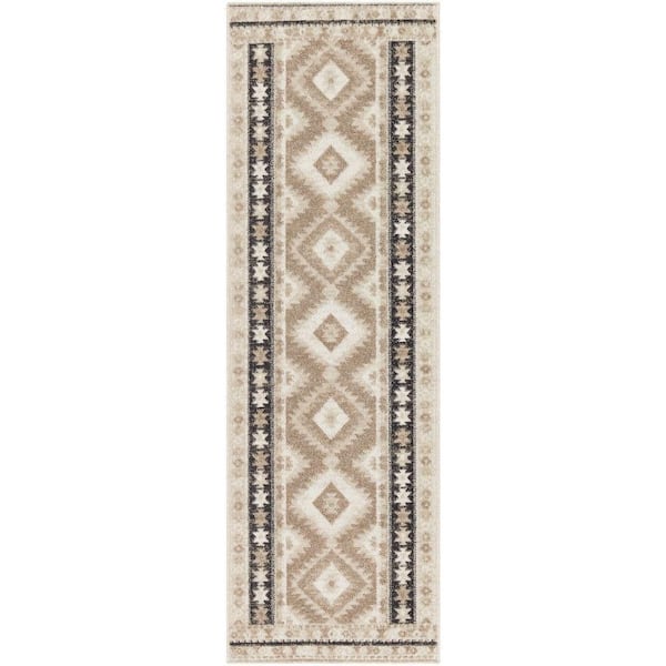 Washable Decor Beige Black 2 ft. x 6 ft. Center medallion Contemporary Runner Area Rug
