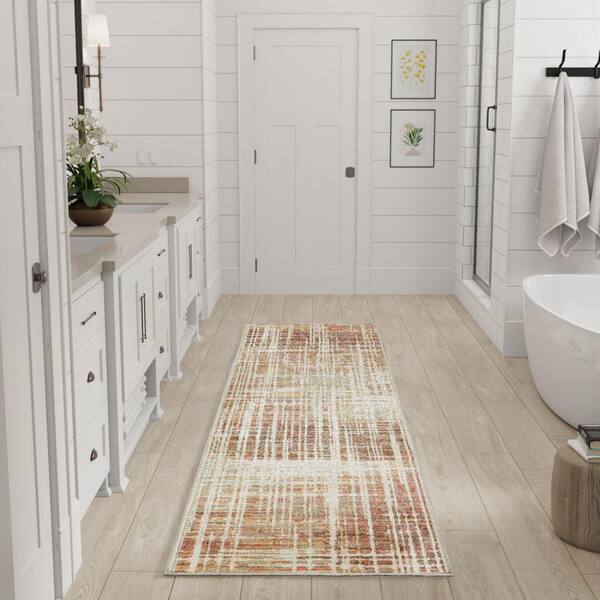 Washable Decor Beige Peach 2 ft. x 6 ft. Abstract Contemporary Runner Area Rug