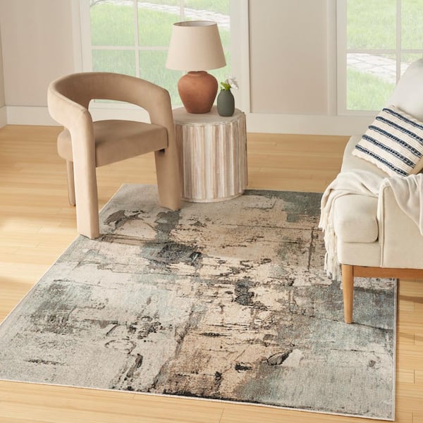 Washable Decor Blue 7 ft. x 9 ft. Abstract Contemporary Area Rug