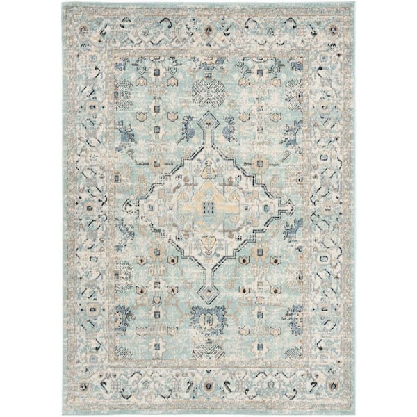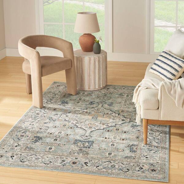 Washable Decor Blue Taupe 7 ft. x 9 ft. Center medallion Traditional Area Rug