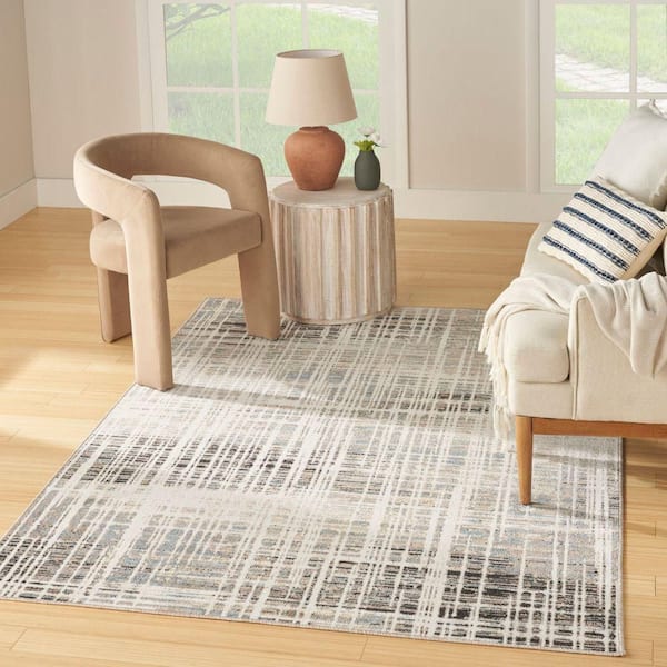Washable Decor Ivory Blue 7 ft. x 9 ft. Abstract Contemporary Area Rug