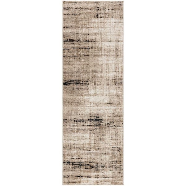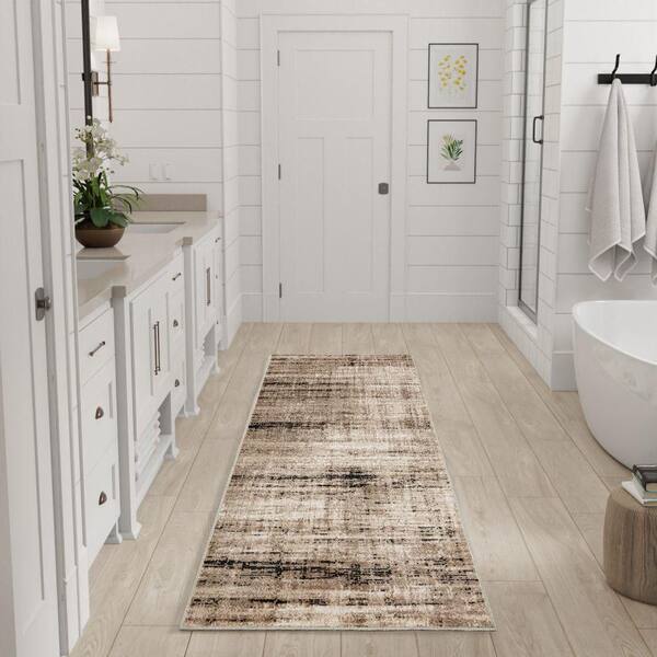 Washable Decor Ivory Mocha 2 ft. x 6 ft. Abstract Contemporary Runner Area Rug