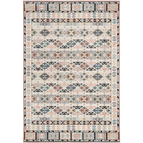 Washable Decor Ivory Multicolor 5 ft. x 7 ft. Distressed Contemporary Area Rug
