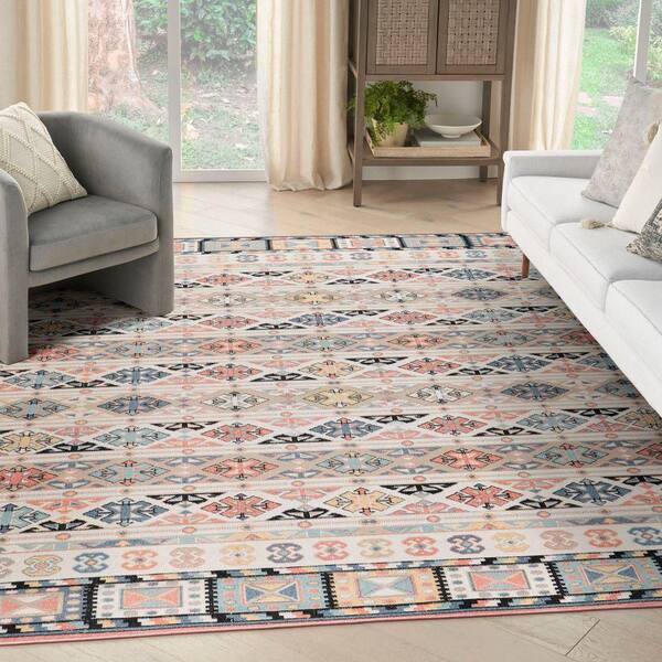 Washable Decor Ivory Multicolor 8 ft. x 10 ft. Distressed Contemporary Area Rug
