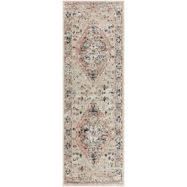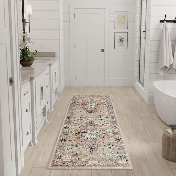 Washable Decor Peach 2 ft. x 6 ft. Center medallion Traditional Runner Area Rug