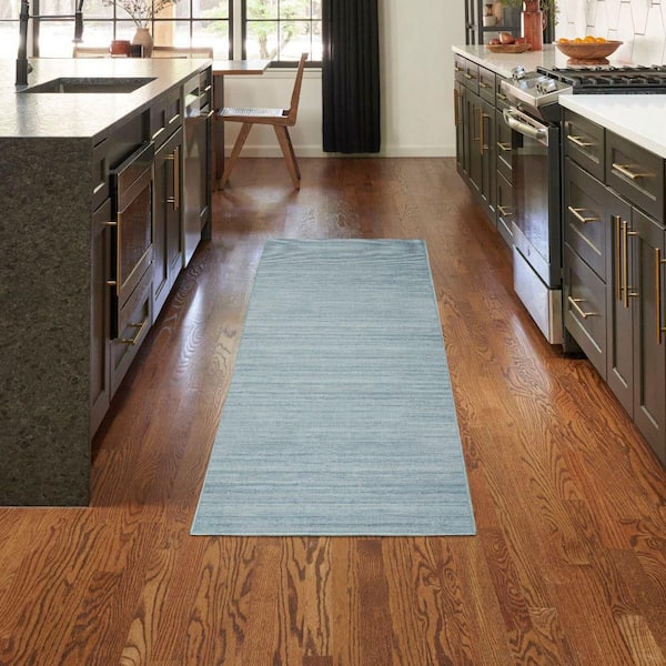 Washable Essentials Aqua 2 ft. x 6 ft. All-over design Contemporary Runner Area Rug