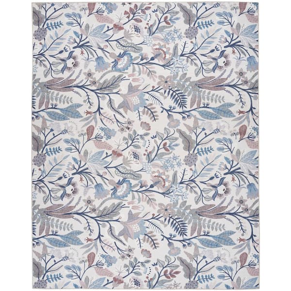 Washables Ivory Multicolor 5 ft. x 7 ft. Botanical Traditional Area Rug