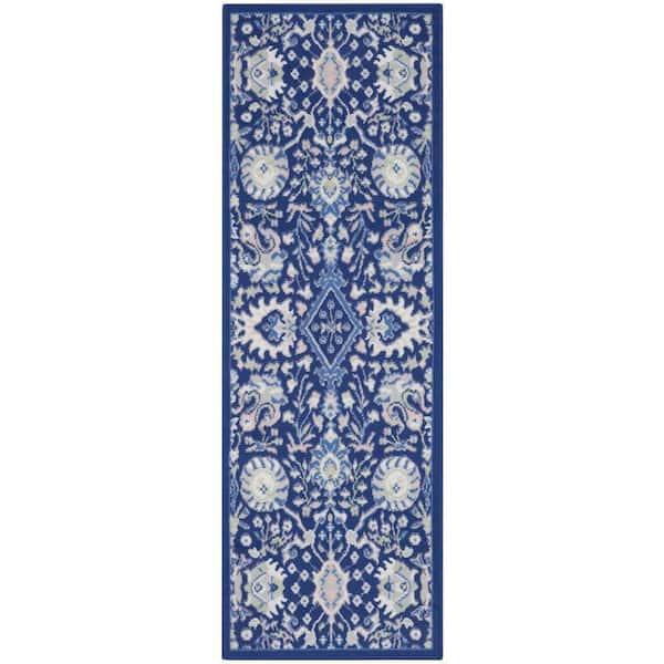 Whimsical Navy Multicolor 2 ft. x 6 ft. All-Over Design Traditional Kitchen Runner Area Rug