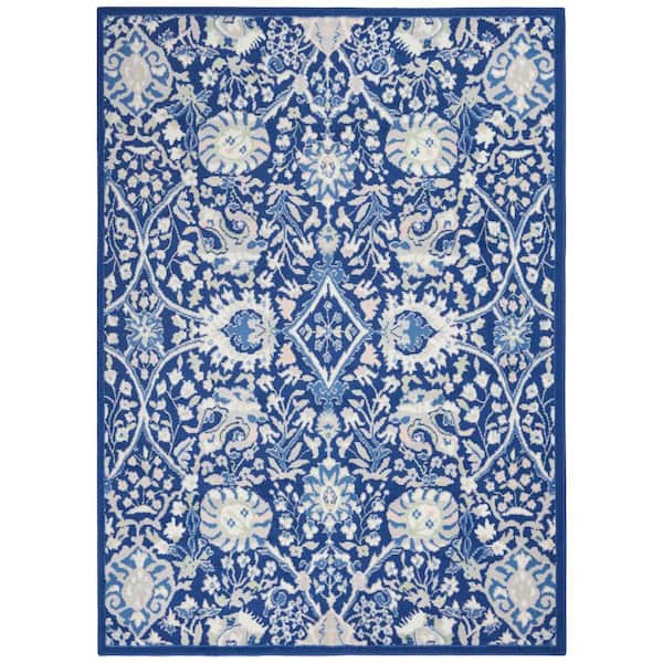 Whimsical Navy Multicolor 6 ft. x 9 ft. All-Over Design Traditional Area Rug