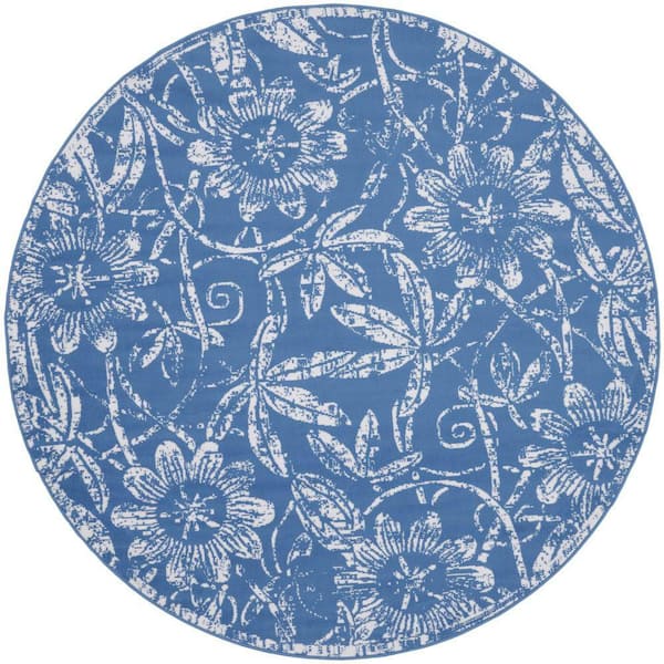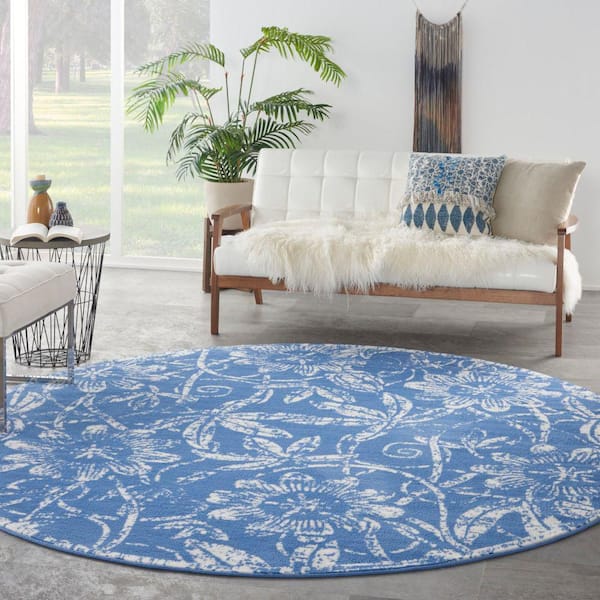 Whimsicle Blue 8 ft. x 8 ft. Floral Contemporary Round Area Rug