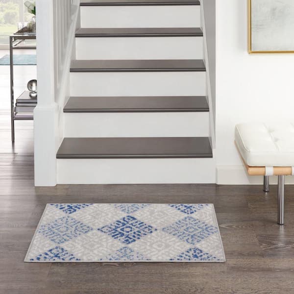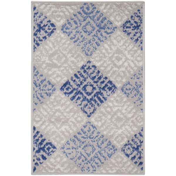 Whimsicle Grey Blue doormat 2 ft. x 3 ft. Geometric Modern Kitchen Area Rug