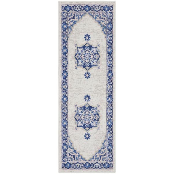 Whimsicle Ivory Blue 2 ft. x 8 ft. Center Medallion Traditional Runner Rug