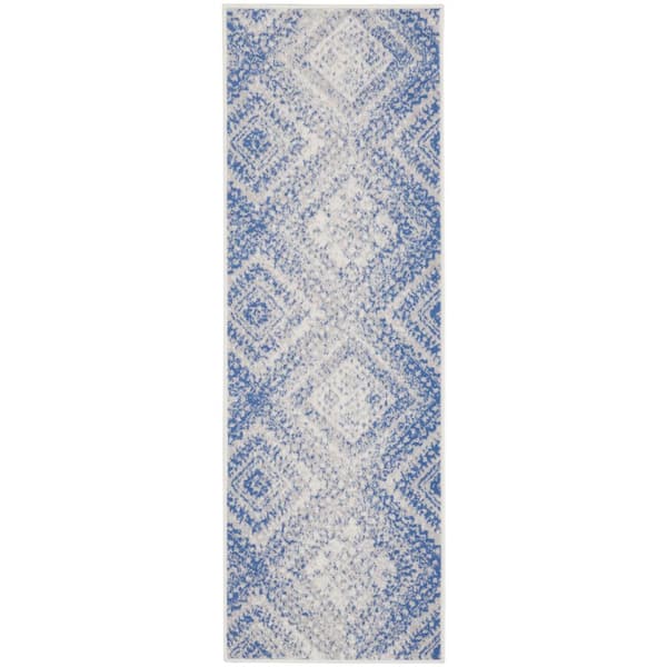 Whimsicle Ivory Blue 2 ft. x 8 ft. Geometric Bohemian Kitchen Runner Area Rug