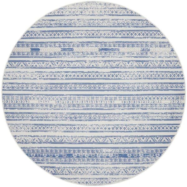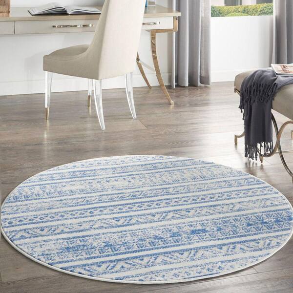 • Ivory blue polypropylene round rug with 2/5 in. thickness