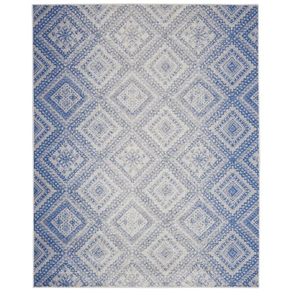 Whimsicle Ivory Blue 8 ft. x 10 ft. Geometric Bohemian Area Rug