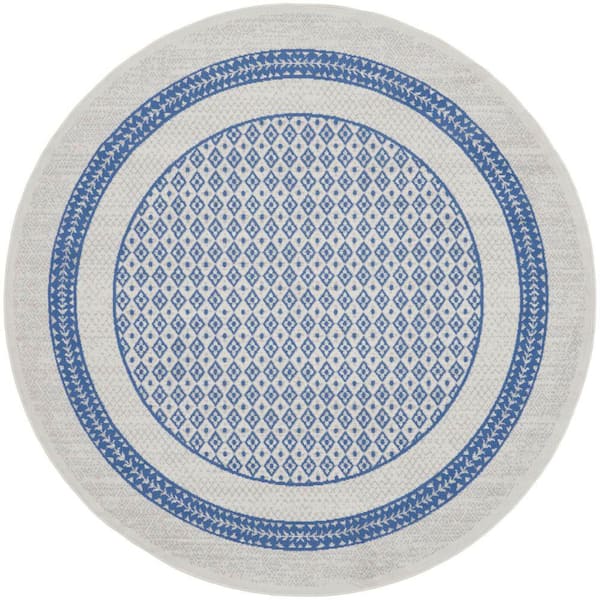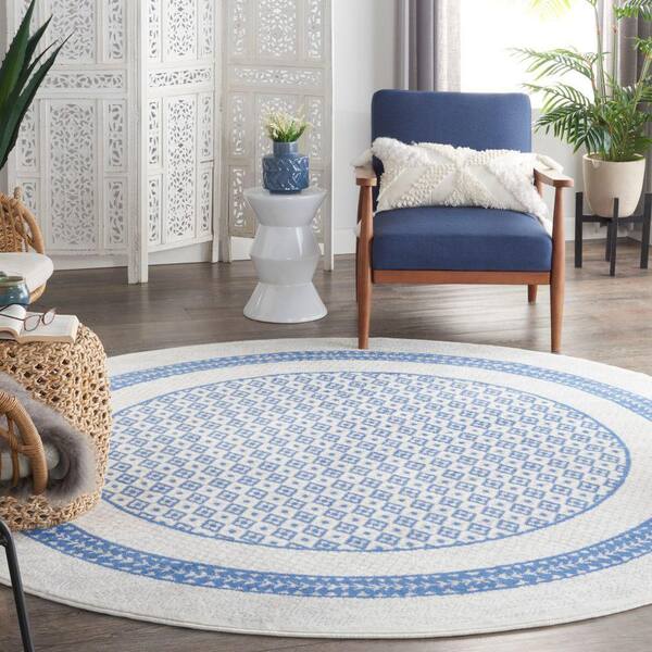 • Ivory blue polypropylene round rug with 2/5 in. thickness