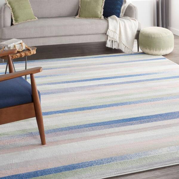 • Ivory multicolor polypropylene area rug with 2/5 in. thickness