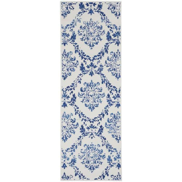 Whimsicle Ivory Navy 2 ft. x 8 ft. Floral French Country Contemporary Kitchen Runner Area Rug