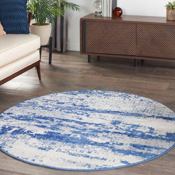 Whimsicle Ivory Navy 5 ft. x 5 ft. Abstract Round Area Rug