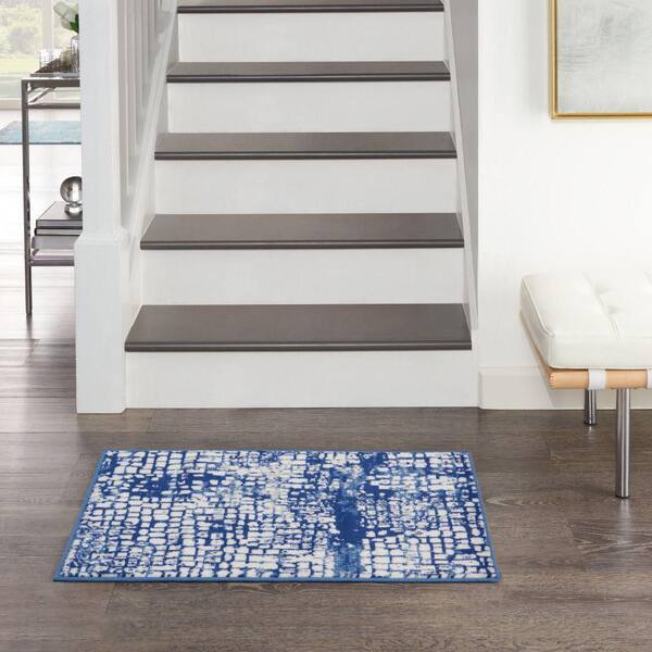 Whimsicle Ivory Navy doormat 2 ft. x 3 ft. Abstract Contemporary Kitchen Area Rug