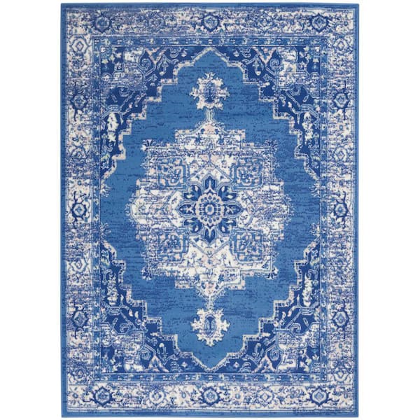 Whimsicle Navy 5 ft. x 7 ft. Center Medallion Traditional Area Rug