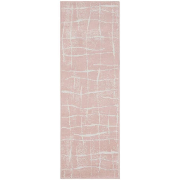 Whimsicle Pink Ivory 2 ft. x 8 ft. Abstract Contemporary Kitchen Runner Area Rug