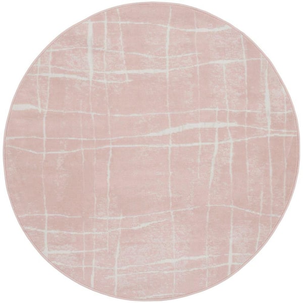 Whimsicle Pink Ivory 5 ft. Abstract Contemporary Round Area Rug