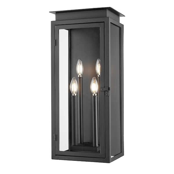 Nova 24.5 inch Weather Resistant Black 4 Light Outdoor Wall Lantern Sconce with Clear Glass Shade