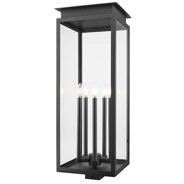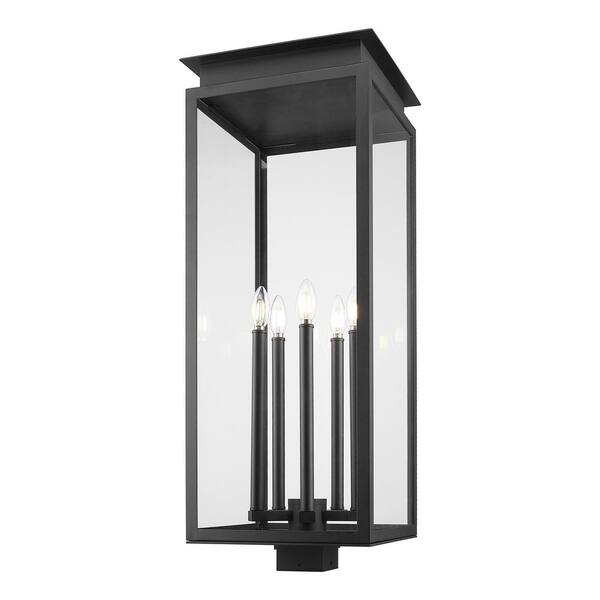 Nova 5 Light Black Aluminum Hardwired Outdoor Weather Resistant Post Light with Clear Glass Shade and No Bulbs Included