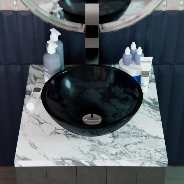 12 in. Mini Vessel Bathroom Sink in Clear Grey Tempered Glass