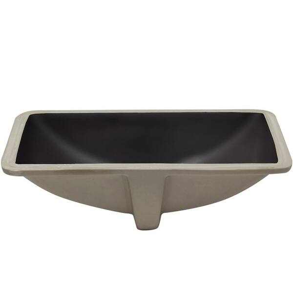 18.25 in. Rectangular Undermount Porcelain Bathroom Sink in Flat Black with Overflow Drain in Satin Brass