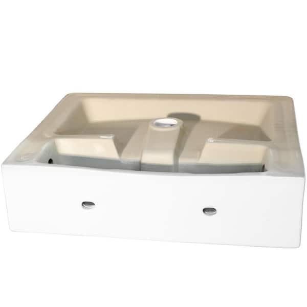20 in. Rectangular Vessel Bathroom Sink in White Porcelain with Faucet Hole and Overflow Drain in Chrome
