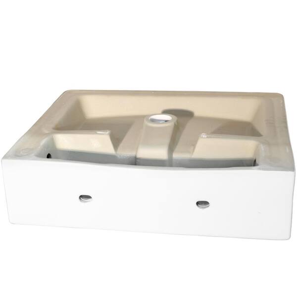 20 in. Rectangular Vessel Bathroom Sink in White Porcelain with Faucet Hole and Overflow Drain in Oil Rubbed Bronze